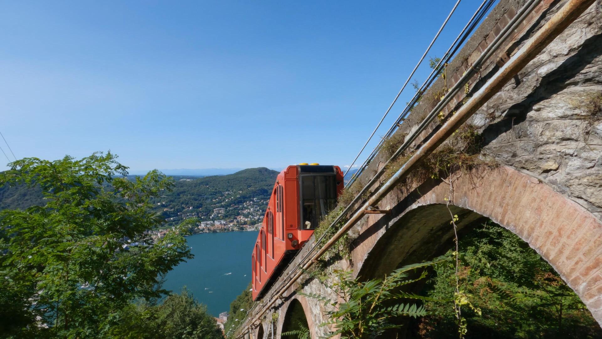 Il ritorno avviene lungo un sentiero, a tatti panoramico, che passa sotto la ferrovia della funicolare, sbucando a breve distanza dalle rive del lago. Classificata T/E, questa escursione è perfetta per chi cerca una gita di mezza giornata, combinando natura, storia e panorami spettacolari. Il percorso è ben segnalato, con tratti acciottolati, sentieri sterrati e gradoni, adatto ad escursionisti di ogni livello, incluse famiglie con bambini abituati a camminare.