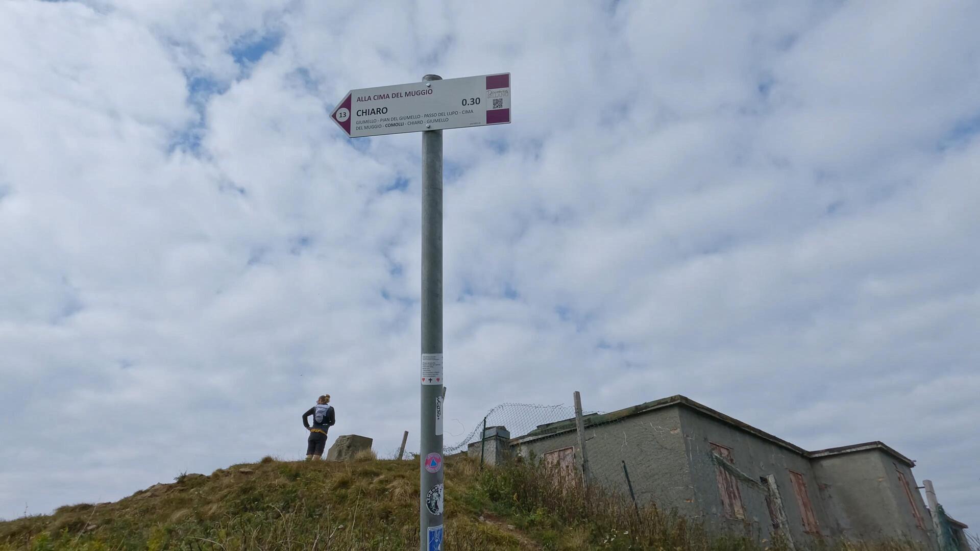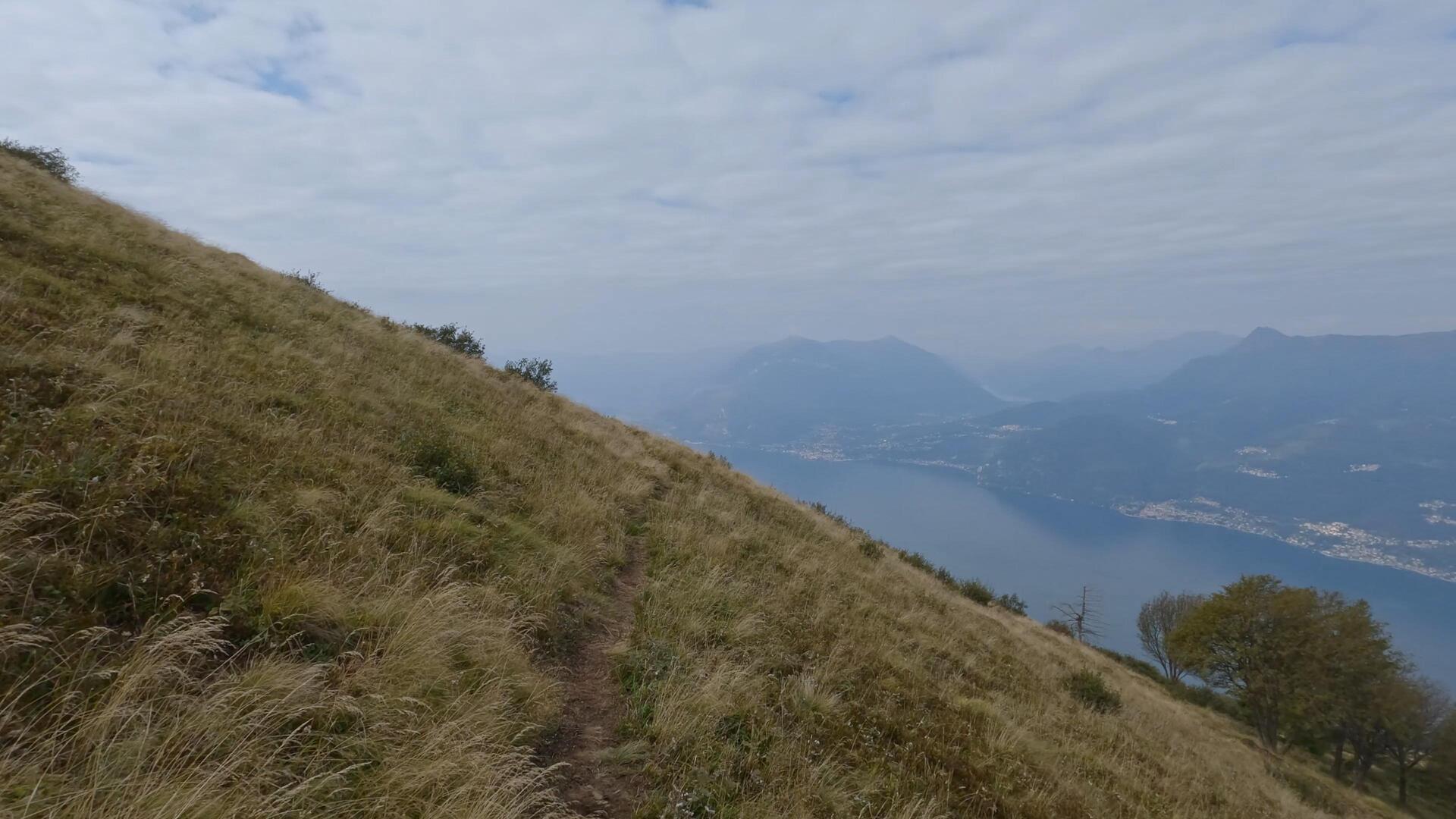 Dal parcheggio all’ Alpe Giumello, si segue il cartello per il Monte di Muggio, imboccando un sentiero ben battuto che taglia il pendio erboso verso nord-est (sentiero non numerato). Il percorso sale moderatamente tra prati e ginestre, passando sotto i piloni di un ex skilift (Alpe Giumello è una storica stazione sciistica). Dopo circa 10 minuti, si supera una piccola zona alberata e si continua su una rampa più ripida. Il sentiero, erboso con tratti acciottolati, conduce a una sella panoramica (circa 1700 m s.l.m.) dopo circa 25 minuti, dove si trova una baita abbandonata con vista sul Lago di Como. Da qui, svoltando a destra, si segue la cresta erbosa verso la vetta. In circa 10 minuti (45 min totali dal parcheggio), si raggiunge la croce di vetta del Monte Croce di Muggio (1799 m s.l.m.), segnata da una grande croce metallica. Il panorama spazia su Lago di Como, Lago di Lugano, il vicinissimo Monte Legnone, Grigna Settentrionale, Grignetta (a est/nord-est) e, in giornate limpide, il Monte Rosa a nord-ovest.