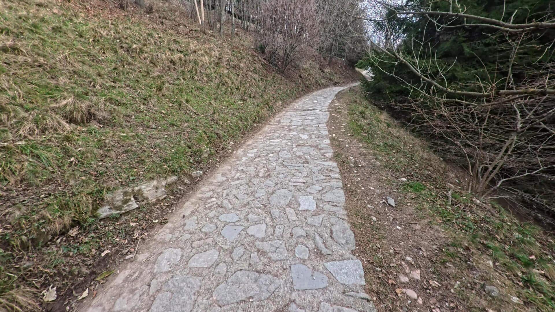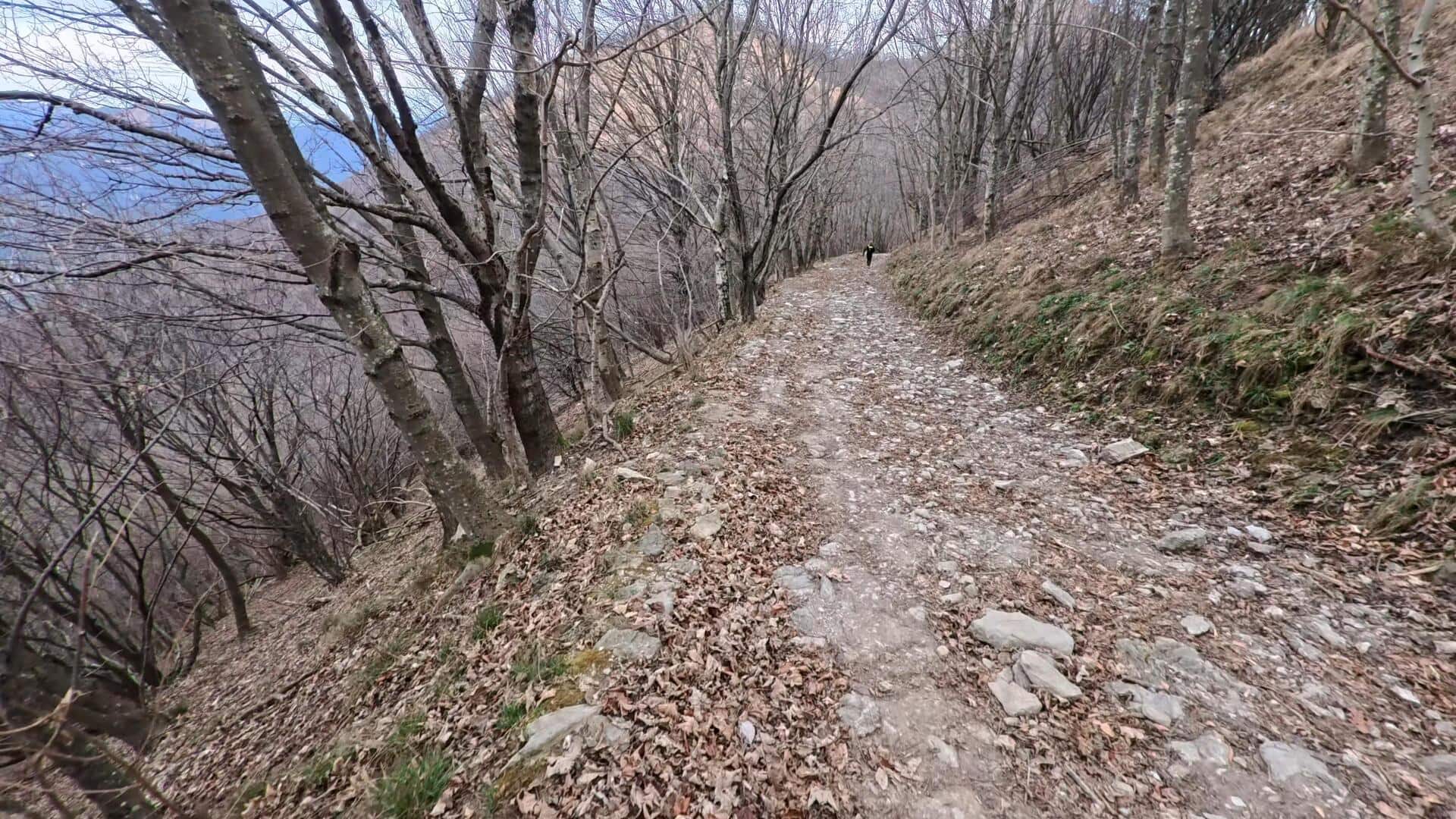 Lasciata l’auto, ci si incammina lungo la strada asfaltata/cementata (chiusa al traffico non autorizzato) in direzione del Rifugio Cacciatori. Superato il primo rifugio, la strada diventa sterrata e si immerge in un bosco misto di faggi e abeti. Il percorso sale con pendenza costante e a tratti sostenuta. Si prosegue sulla carrareccia principale fino a raggiungere il Rifugio Capanna Mara (1.125 m), storico punto di ristoro e crocevia di sentieri che collegano i monti del Triangolo Lariano.