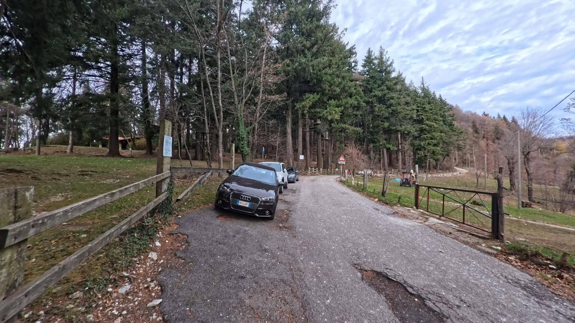 Il punto di partenza è l’Alpe del Vicerè (903 m), nel comune di Albavilla (CO). Per raggiungerla si sale da Erba o da Como verso Albavilla; dal centro del paese si seguono i cartelli marroni per l’Alpe del Vicerè, risalendo una strada asfaltata tortuosa (ma ben tenuta) per circa 9 km. Arrivati in cima, la strada termina in un enorme parcheggio a pagamento (strisce blu, macchinette presenti in loco) ombreggiato da grandi alberi. Essendo una meta gettonatissima, nei fine settimana primaverili o estivi è bene arrivare presto per trovare posto.