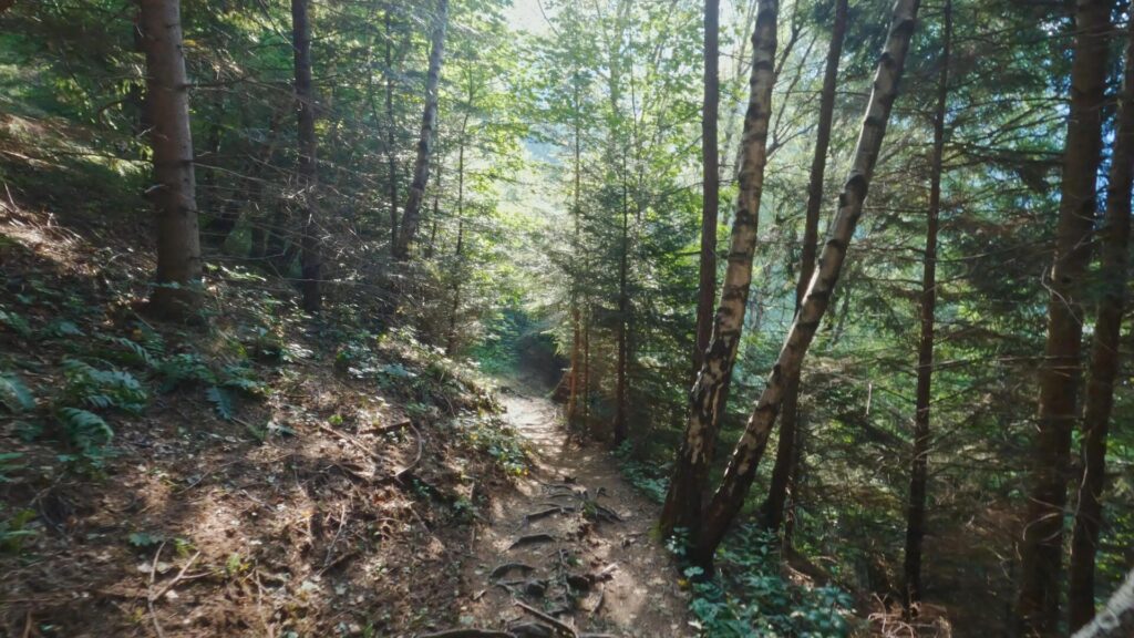 Per la discesa ci sono molteplici opzioni, in questo caso, si segue il sentiero 17 (indicazioni Brumano/Forbesette) dal Rifugio Azzoni, scendendo lungo la cresta est del Resegone. Il percorso, inizialmente ripido su roccette, non presenta tratti particolarmente esposti. In circa 30-40 minuti, si raggiunge il Colletto di Brumano (1.650 m s.l.m.), dove si continua sul sentiero 17 verso la Sorgente Forbesette (fontanella, 1.450 m s.l.m.), attraversando un bosco di faggi. Da Forbesette, si segue il sentiero 7 in leggera salita fino al Passo del Giuff (1.531 m s.l.m.), raggiunto in circa 20 minuti. Dal passo, il sentiero 7 scende dolcemente nel bosco, attraversando ex piste da sci, fino alla Bocca d’Erna (30-40 minuti). Da qui, una breve risalita di 10 minuti riporta alla stazione della funivia ai Piani d’Erna. La discesa richiede circa 1h 45’. Si rientra con la funivia (ultima corsa 17:30-18:30 in base al periodo).